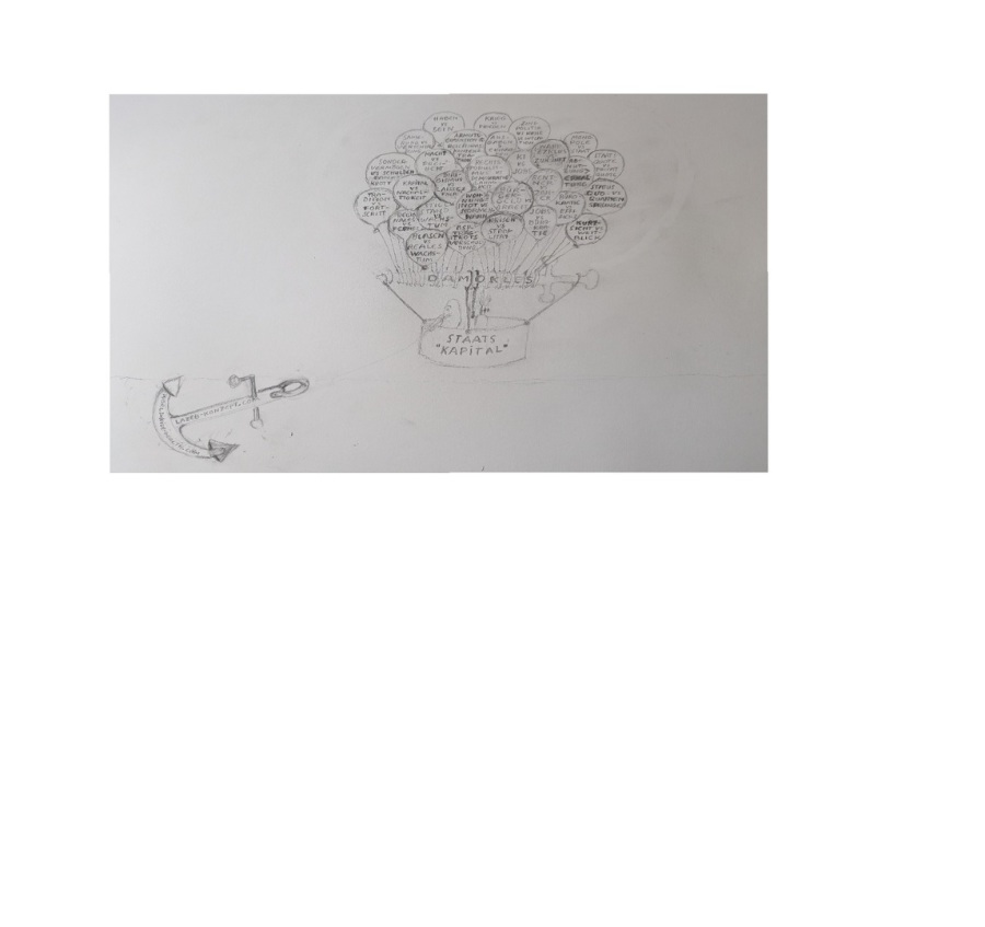 Geist mit Sparschwein (1.Skizze...) ... Der Habgier-Rendite-Fuß "ich habe, also bin ich" als